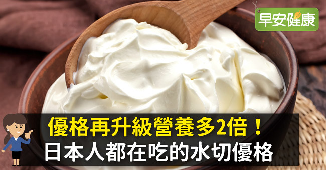 日本管理營養師三城円比較了同樣100公克的無糖優格及水切優格,發現水切優格的蛋白質及脂質約為無糖優格的2倍,等於只吃平常一半的量,就可以攝取到同樣的營養。而且水切優格不僅營養,熱量也只有鮮奶油或起司的⅙,可說是減肥者的福音。