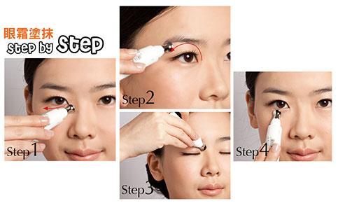 眼霜塗抹方向第一步,就是由眼頭滑向眼尾。
