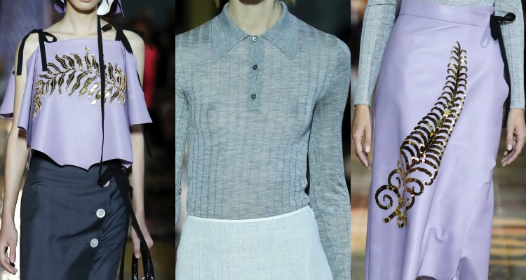 Miuccia Prada 一直以來就一直力求在設計中圖破,這次她決定扭轉大家對於極簡風格的定義,他將華麗的元素融入其中,從金色面料、亮面刺繡到印花都能在這次的作品中被看見,獨特的材質也是這次的亮點之一,第一套開場的細針織螺紋布料以及後面多套不收邊的刺繡皮革,Miuccia Prada 用一貫返璞歸真的方式呈現作品,對她來說一切都回到單純的狀態就是 “極簡”。