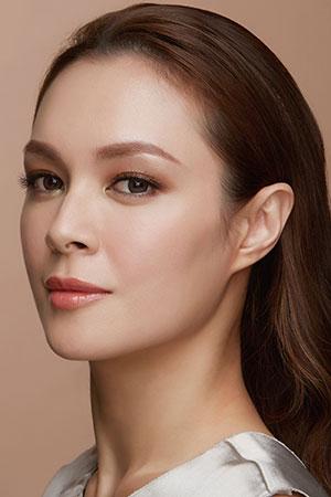 臉頰:為了營造溫柔的異國氣息,建議使用較自然的橘色系。使用霜狀腮紅,可以修飾過高的顴骨,並讓肌膚看起來充滿自然的光澤感。