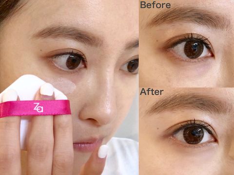 E編才再苦惱最近膚況不穩定該怎麼辦,結果「Za柔光特調輕氣墊」完全解決E編問題!使用後換季敏感的小紅疹,熬夜的黑眼圈及尚未退的痘疤,通通拍一拍就隱形~水滴型粉撲真的不能不好好稱讚,水滴型設計讓妳化妝零死角!先用下方的圓弧大面積沾取膚色作打底,再使用尖端或是斜面沾取粉色愛心遮瑕黑眼圈及加強蘋果肌澎潤度,最後再用尖端沾取白色愛心,作T字及下巴的打亮,超迷人的質感的霧光肌就完成啦!而且E編從早上完妝後到晚上回家,妝容不但持久還不暗沉!來看看E編的實測照,這盒不收說得過去嘛!!!