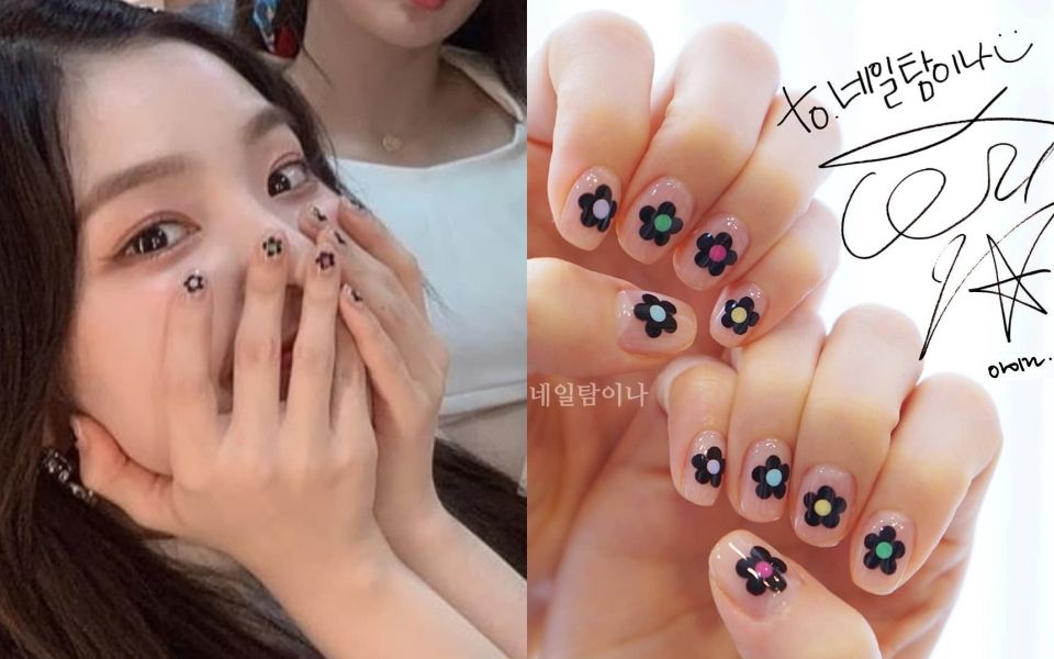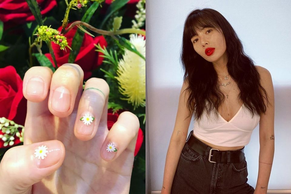 跟冰山美女般的外表不同、Irene的美甲款式相當活潑可愛!這款小花美甲搭配透明的底色,真的非常可愛!透明底色也讓手指看起來很乾淨,建議短指甲的女孩會比較適合這種彩繪喔!
