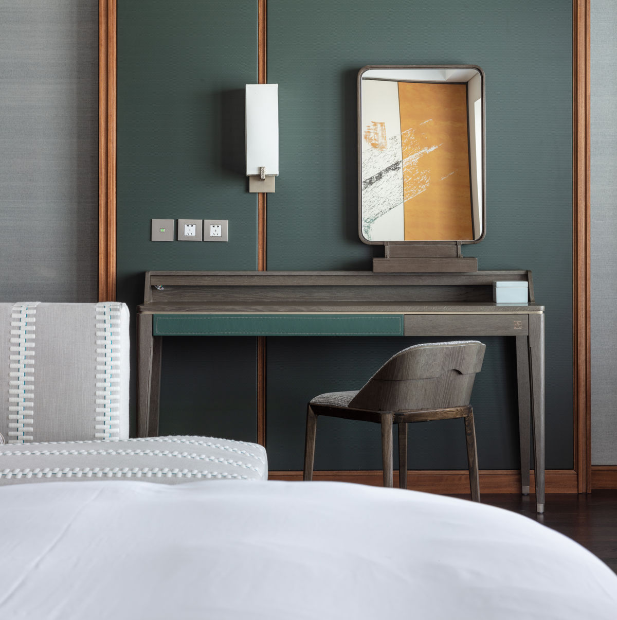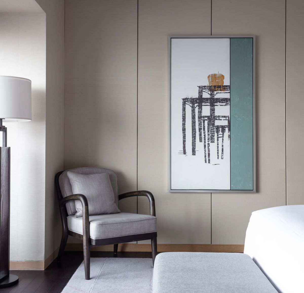 LTW的設計從北京柏悅酒店的客房、迎賓區與宴會廳開始,將歷史元素與現代住宅風格注入空間。設計概念從庭院寧靜安謐的自然環境取得靈感,客房以米白色、淡綠色和灰色為主,配襯著溫暖的木製家具與深色木紋地板,整體色調簡潔大方渾成自然的氣息,使客房散發著和諧明亮的愉悅感。每間客房均舖設色彩樸素的大型紋理地毯,地毯上粗細不一的墨綠色線條整齊有致地於一隅伸延,抽象地描繪中國國花的形態,低調流露出蒼古淡雅之風。四合院亦為開闊的淺米色牆壁帶來裝飾靈感。壁上的畫框中以抽象筆觸勾畫古董酸枝桌椅的形象,予人穿越時空的想像。室內陳設亦經細心挑選,溫婉柔美的侍女銅像置於一隅,給予客房空間精簡,卻也最打動人心的點綴。