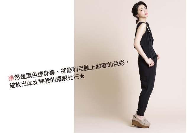 因為臉部色澤很搶眼了!所以服裝就選用可扮演最佳點綴角色的黑色單品。