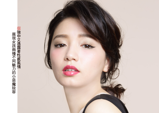 以眼尾微微上揚的的貓眼妝╳小性感亮澤唇彩,表現出大膽但不老氣的完妝。只於重點部位塗上色彩,就能讓你的妝效更具時尚感。