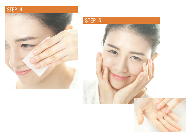 如果你沒有長痘痘,就可以依肌膚狀況將步驟2已經沾濕的化妝棉攤開後,於較易乾燥的兩頰部位作簡單濕敷。要注意的是濕敷時間勿過長,約30秒到1分鐘即可。