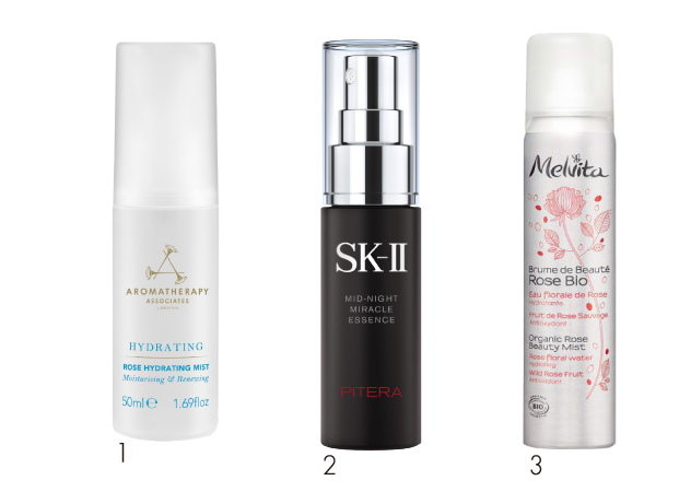 1. AROMATHERAPY ASSOCIATES 玫瑰保濕噴霧 50ml NT1100 大馬士革玫瑰純露帶來清新舒服感受。2. SK-II 青春奇蹟噴霧精華〈清新舒緩版〉50ml NT1990 添加薄荷醇精萃,透過天然植萃涼感保養,可舒緩鎮定肌膚受到外界環境刺激所造成的累積傷害及疲勞。3.melvita 歐盟BIO玫瑰保濕柔膚露50ml NT580 不含香料與酒精。以豐富的玫瑰花水為基底,能提供角質含水量,達到保濕柔軟作用,