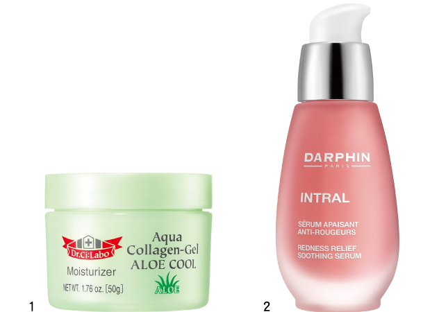 如果有攜帶降溫保養品,最好在戶外就立刻幫肌膚塗抹,或購買冰涼飲料幫肌膚降溫。回到飯店後可以洗個冷水澡,再用蘆薈成分的凝露厚敷肌膚,肌膚的表面一旦做好鎮定及降溫動作,肌底較不會感應到發炎指令,即可減少黑色素產生。