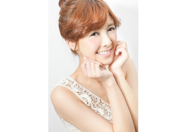 選擇橘色調的腮紅,以輕輕畫圓的方式刷在笑肌上方的位置,增添俏皮可愛感。