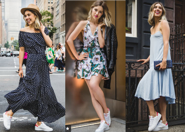 其實運動鞋也可以搭配較優雅的洋裝,而且一點違和感都沒有,運動鞋真的是今夏必定要購買的流行單品,時尚百搭又很舒適,逛再多的街都不會累喔!