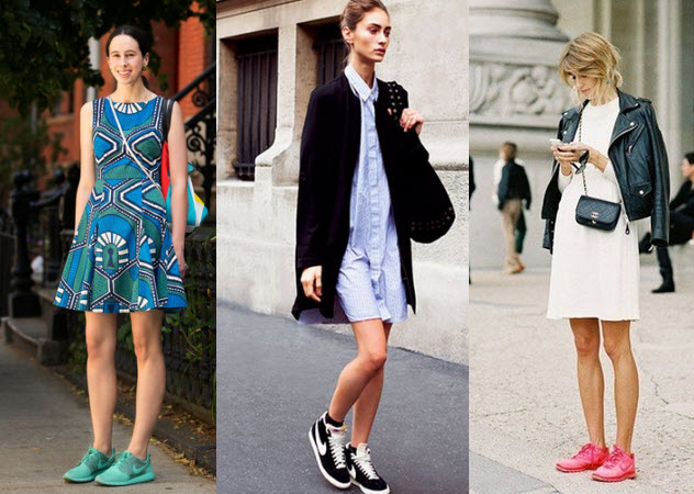 通常運動鞋的穿搭都是偏休閒,像是T恤搭牛仔短褲、棉質洋裝或長裙,讓平常比較Lady的女孩好困擾喔…