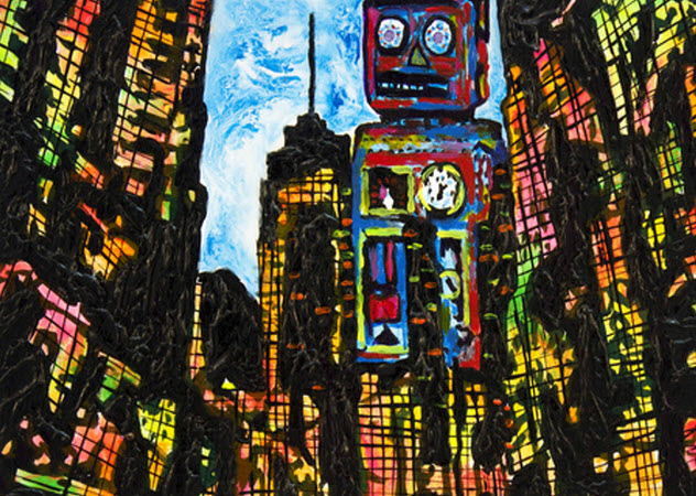 John Bramblitt發現一種特殊顏料Fabric Paint,乾掉會形成突出於畫布的稜角,他就利用觸覺確認畫布位置與顏色,創作一幅幅色彩繽紛充滿活力的畫作,真的很令人佩服!
