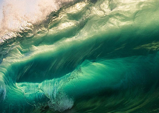 來自美國的Clark Little 原本在植物園工作,因為妻子想要用河流或大海風景照裝飾家裡,他為了愛妻因此轉型成了衝浪攝影師,Clark Little冒著生命危險,直入海浪中心,近距離捕捉巨浪內部壯觀的景色,拍攝出海浪最真實、最驚人的面貌,可說是一位用生命在拍攝的攝影師。
