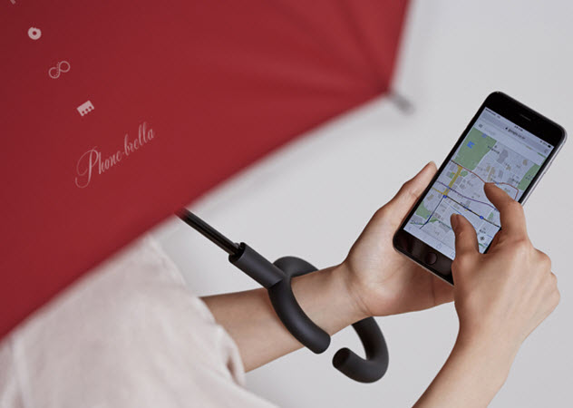 以前出門找地址,不是拿出紙本地圖尋找就是開口問,但現在有了手機後,只需要Google map,就可以幫你解決難題,所以下雨天時常常看到有人一手拿手機、一手撐傘在找地址,怕手機不小心落地又怕自己淋雨,搞得手忙腳亂狼狽不堪。