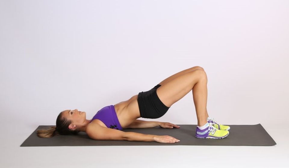 躺在地面上並將膝蓋彎曲,接著以臀部施力將臀部抬起,讓背部、臀部、膝蓋盡量呈一直線,縮緊屁股約5秒左右、再慢慢放下,整個動作可以多重複約20-30次。