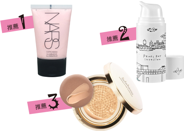 所以,在為底妝加進光澤前,請做好保養,讓自己皮膚吸收所需養分,變得柔軟且充滿水分,才可以進行喔。我建議乾肌及混合肌可使用美容油,或者精華油,在化妝水後,在手掌上滴個3~5滴並雙手搓揉均勻,以臉部為中心由內往外為臉按摩直到完全吸收,再接著做平時保養後續動作;而油性肌膚請先敷一張面膜,後續保養加進玻尿酸產品(例如精華液或凝膠),皮膚有滿滿水分,就不容易出油哦。
