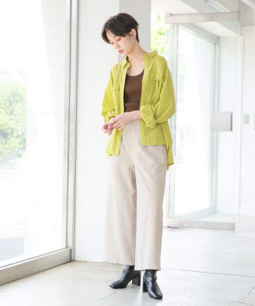 比起洋裝的剪裁,想讓靴子的穿搭個性更加貼近中性且不造作的風格時,建議可以以長版襯衫來搭配。廓型的版型讓穿搭上有更多變化空間,不論是直接單穿靴子或是加上一件寬褲都是能讓造型有層次的簡單方式。