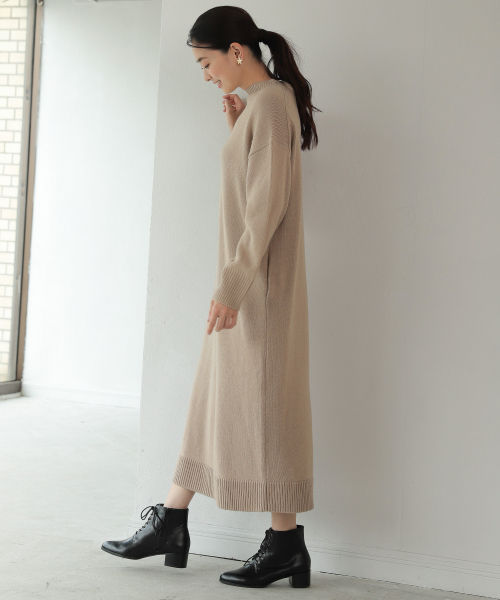 延續裙裝與靴子的混搭造型,想更快速地完成時髦穿搭就選擇洋裝吧!一件式的剪裁可以讓秋冬兩季的服裝看起來輕盈許多,搭配上中筒靴露出一小截的腿部肌膚也是一種層次感的表現。
