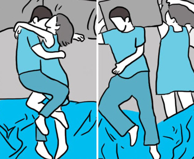 剛開始兩人會糾纏在一起,等睡著後就會散開,你以為兩人的愛情不好才會有這樣的睡姿嗎?那你就錯囉~這是一種有安全感的表現,雙方都給予彼此最大的自由空間。