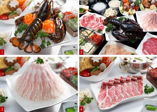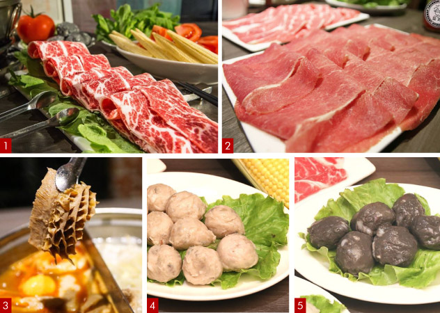 肉品方面除了少見的黃牛肉外,事先已經先煮過2.5小時,片成完美厚度0.2公分的招牌三層肉,只需燙個幾秒就能品嚐,再搭配以五款時令蔬菜,巧思盛盤形成五行五色, 搭配饕鍋湯底及豐富食材,完美呈現色香味俱全的火鍋佳餚。