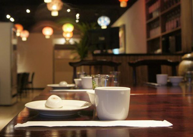 饕鍋的店內裝潢以中式喜氣設計為主,各色燈籠、搭配古色古香的中式木桌椅,牆面也飾有中式花朵圖畫,連放置調味料的區域也是一張有雕飾的木桌,更令人好奇的是,牆上掛有一副由荳蔻、八角、丁香、小茴香、辣椒等香料拼貼出來的畫,這些可是火鍋底湯頭缺一不可的必備香料!據說這些點子皆出自曾在裝潢界工作的老闆權哥之手,讓人有種進到客棧,就想來句「小二,上菜」…