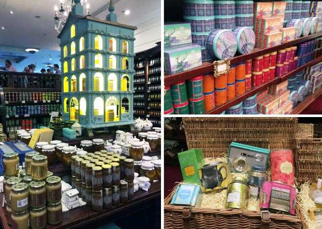 因為下午茶在倫敦非常盛行,英式茶成為許多人會購買的伴手禮,在Fortnum & Mason你會發現一般商場會看到的茶罐包裝外,還有各式果醬,重點是茶的外盒樣式琳瑯滿目,不用另外包裝就非常好看,還有幫你搭配好的野餐籃也好吸引人,喝下午茶的基本配備茶具這兒也好多。