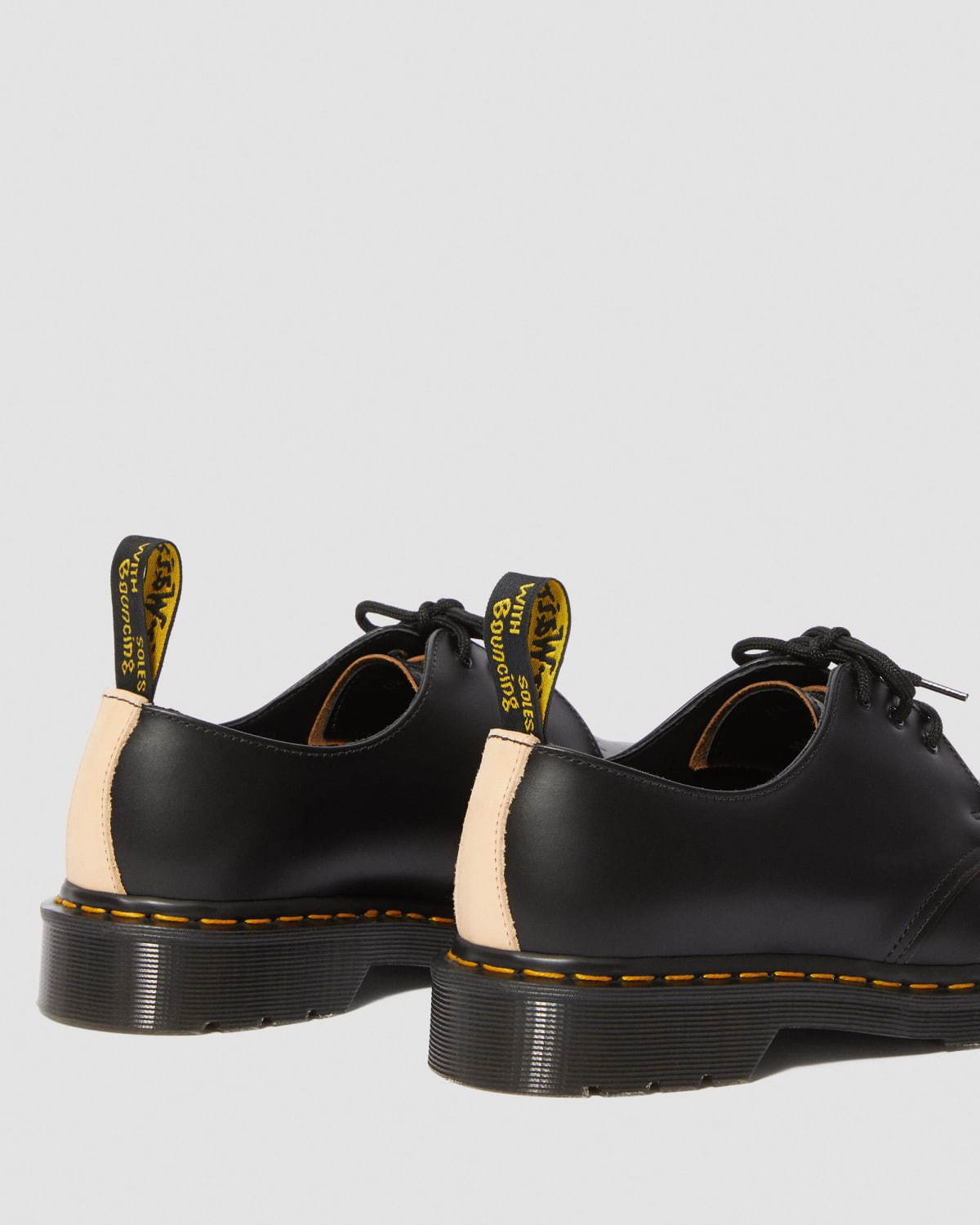 純黑造型的「1461 Hender Scheme」由位於英國製靴工廠的工匠製作,鞋墊處不僅燙有 Hender Scheme 金色Logo外,皮革製作的鞋帶及可拆式流蘇鞋舌也附上原色與純黑兩色可供交互使用。