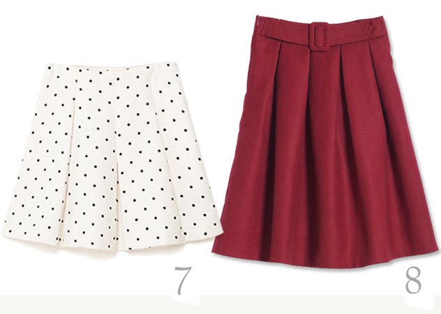 別緻的光澤布面,上身搭配素色毛衣就很時髦。