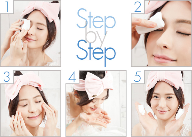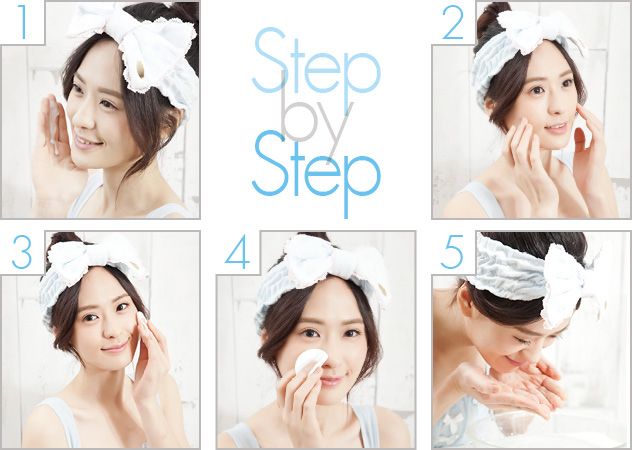 Step3.選擇沒有織紋的乾淨化妝棉,由下而上、由內而外全臉擦拭。