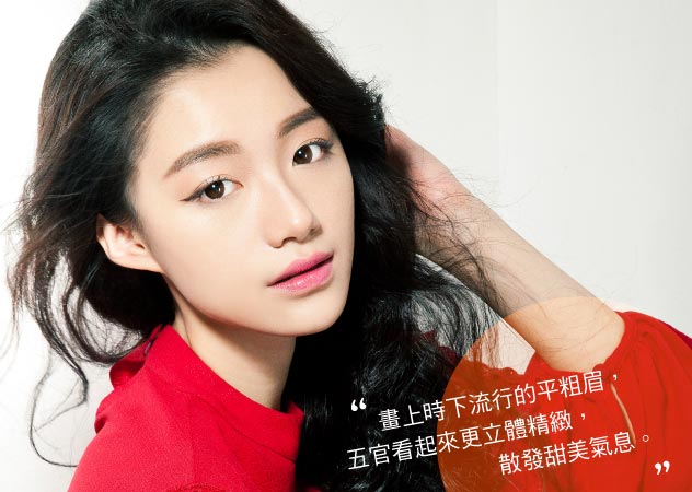After>>將眉尾拉長至眼尾,並將整個眉形的粗度做些調整,讓五官變得集中立體,達到小臉效果。