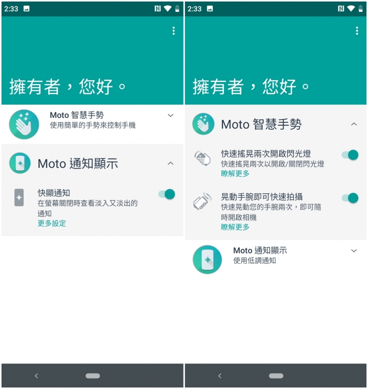 ◎Motorola One 獨家Moto experience手勢功能