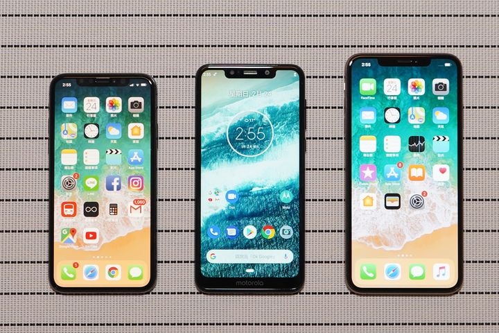 設計風格上也跟iphon X系列超像的說,既然有超過87分像就來跟iphone X以及iphone XsMax 來對比一下看看,Moto One 的質感上還真的沒輸旗艦機型,跟隨大潮流的瀏海頭都也很像咩。