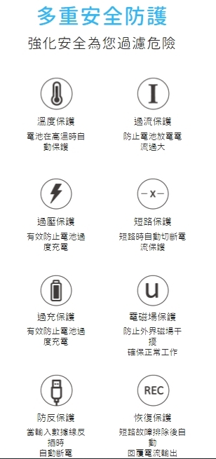 ▲不時有聽到行動電源燒毀的新聞,【WYLESS】Power Juice H8提供了多道安全性的保護,讓你使用更安全。