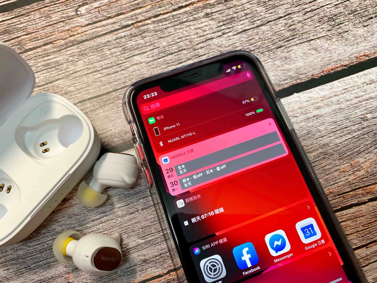 NUARL NT110 耳機採用高通( Qualcomm ) QCC3020 藍牙晶片,QCC3020 是目前最多次旗艦耳機選用的藍牙晶片,與 QCC3026 規格上差不多。基於藍牙 5.0 協議下,可以支援aptX、AAC、SBC 等傳輸協定。配對方式與多數藍牙耳機相同,如有疑慮可以參考上方影片。使用 iPhONE 配對後可以從側欄看到目前主耳電量大約剩餘多少。