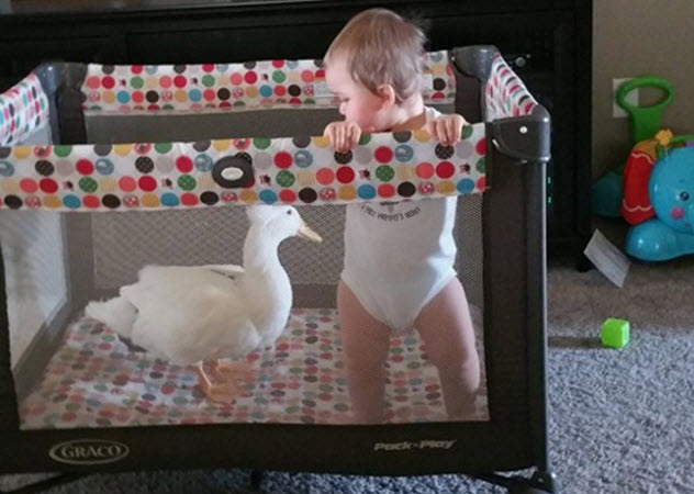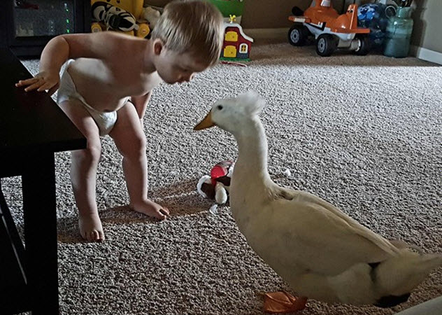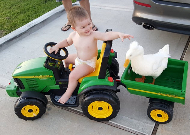 小編今天要介紹的小鴨鴨與小孩之間逗趣歡樂的生活,故事的開始是當Taylor9個月大時,爸爸將名為Bee的小鴨帶回家,從此之後就展開了小孩與小鴨鴨密不可分的好交情,兩人時時刻刻都膩在一起形影不離,不管走到哪裡都是一起行動,小孩有時會開著玩具車帶小鴨鴨去兜風,有時候兩隻會一起到公園玩溜滑梯,晚上當然會一起洗澡澡囉~