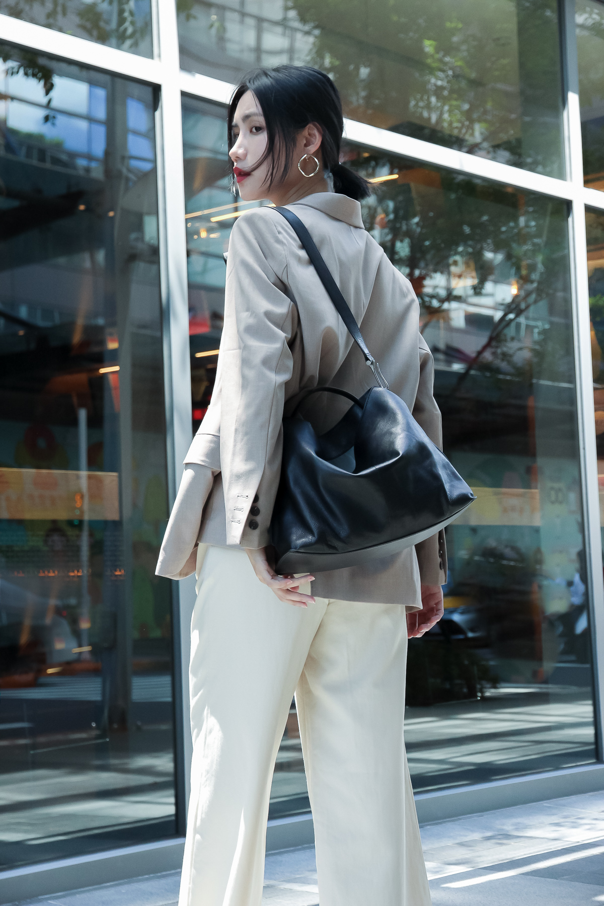 不論是工作日還是將面臨較為嚴謹的場合,正式的穿搭大多都以較單一的衣著色彩為主。此時,包包便成為了可以左右整體衣著感的重要配件。使用有著清晰紋理的小水牛皮所製作,Darker Than Black Bags 的『Valley Hobo Bag』擁有中等的容量卻相當輕巧,可放進行事曆、筆記本以及 iPad 等辦公小物,尤其適合通勤時刻選用。