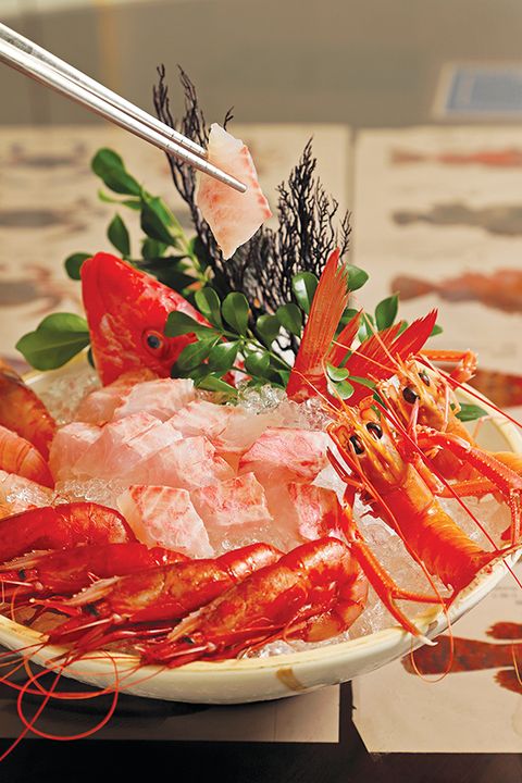 別錯過的招牌是角蝦、甜蝦、胭脂蝦拼盤兩吃──先品嘗生蝦的鮮甜滑嫩,再把蝦頭插回冰盆中保鮮,讓店家收回煮湯。剝完蝦殼,手上還殘留著蝦膏狂野撩人的氣味,吃完了卻仍意猶未盡;所幸不久後就搖身一變成為華麗的蝦頭味噌湯,愈煮蝦味愈濃、湯頭愈甜,直喝到湯鍋見底,打了個飽嗝才心滿意足。