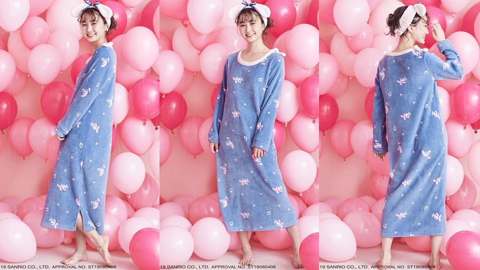 連身的洋裝睡衣少了褲子的束縛,暖暖的毛料手感極佳!坐肩上的美樂蒂兔耳蝴蝶結,呈現出滿滿My Melody的淘氣感~彷彿就是Melody的可愛化身!長洋裝的長度剛剛好,手腳都能完美的被暖暖的睡衣包裹住,女孩們再也不用擔心手交冰冷的問題了!