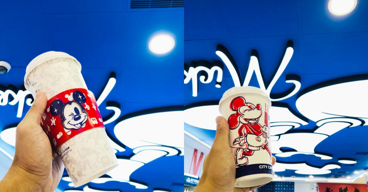 《City Cafe》同場加映米奇造型限定咖啡杯與杯套,依大中小三款杯型,而有不同的米奇圖案,特別是特大杯的「鏤空米奇表情杯套」,可以讓你心隨意轉,轉動它的可愛表情,這款杯身及可愛的咖啡杯,絕對喝完捨不得丟。