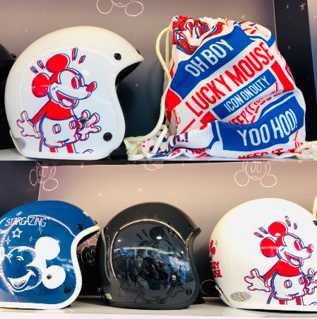 安全帽上印有經典米奇的LOGO,搭配背袋方便攜帶,夠黑、藍、白三種顏色(為什麼不出粉紅色的啊),整體走復古萌的路線,,可以直接Hashtag男友一起買一對了,下次騎機車出去帶在頭上絕對是馬路上回頭率最高的一對!