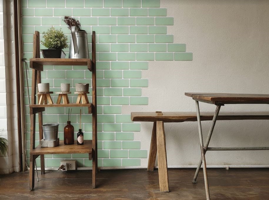 2. 喜歡較時尚、耐看的風格,可選用近年很流行且常見於廚房牆面的地鐵磚。若想打造與屋主的北歐風廚房相近色系,可選擇綠色系地鐵磚製造清爽視覺。