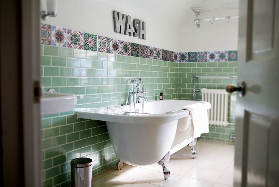 2. 腰帶貼法:若想為空間做小小的裝飾點綴,可參考腰帶貼法,許多屋主應用於廁所或廚房牆面。