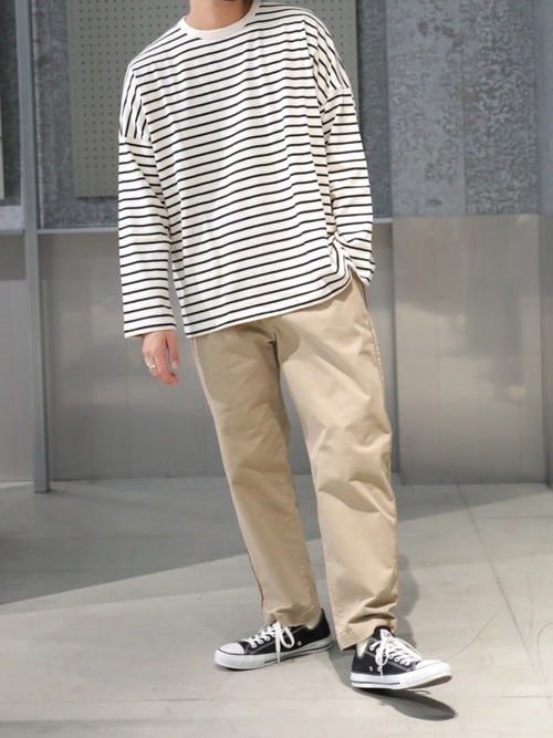 黑白條紋 TEE X 卡其褲穿搭