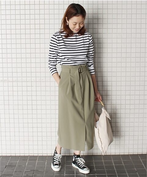 意外可以修飾出理想線條的直筒長裙是近日日本女生穿搭率相當高的單品,通勤時搭配高跟鞋就可以很有微正式的服裝氛圍。但只要換上高筒帆布鞋,卻又能即刻給人運動混搭的好感衣裝。