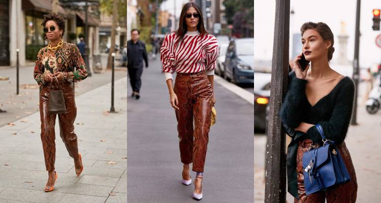 除了大地色系的選擇外,今年時裝週場外也多了很多蛇紋褲款!這種看似難以駕馭的狂野元素,不管妳上身是簡單的穿搭,還是用更突兀的花紋去做搭配,都能意外穿出別具特色的時尚氣場!