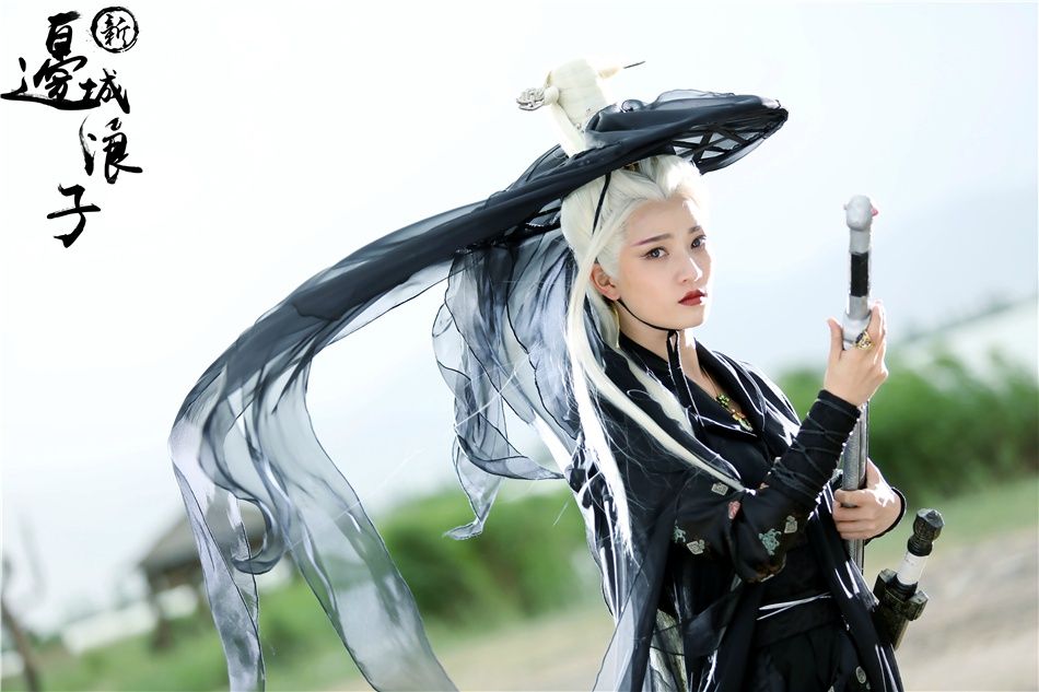 《新邊城浪子》另一位戴著斗笠的俠女也滿美的,王藝曈飾演魔教大公主花白鳳,黑色的斗笠配白髮霸氣十足。
