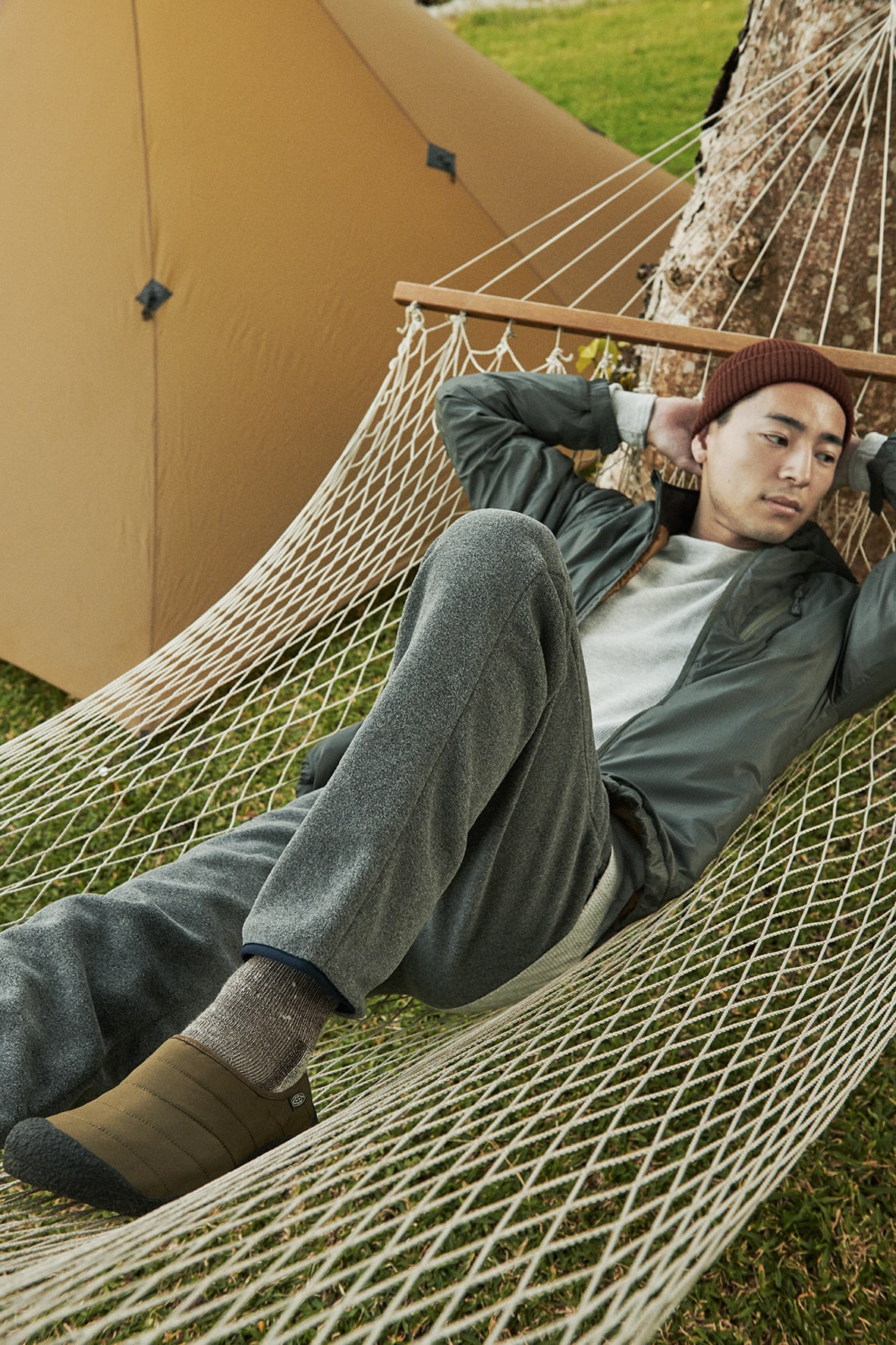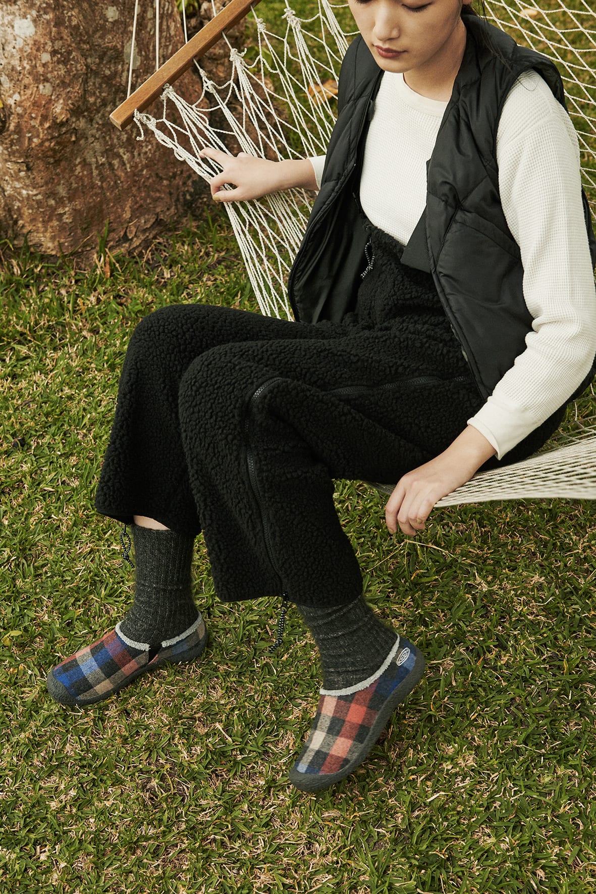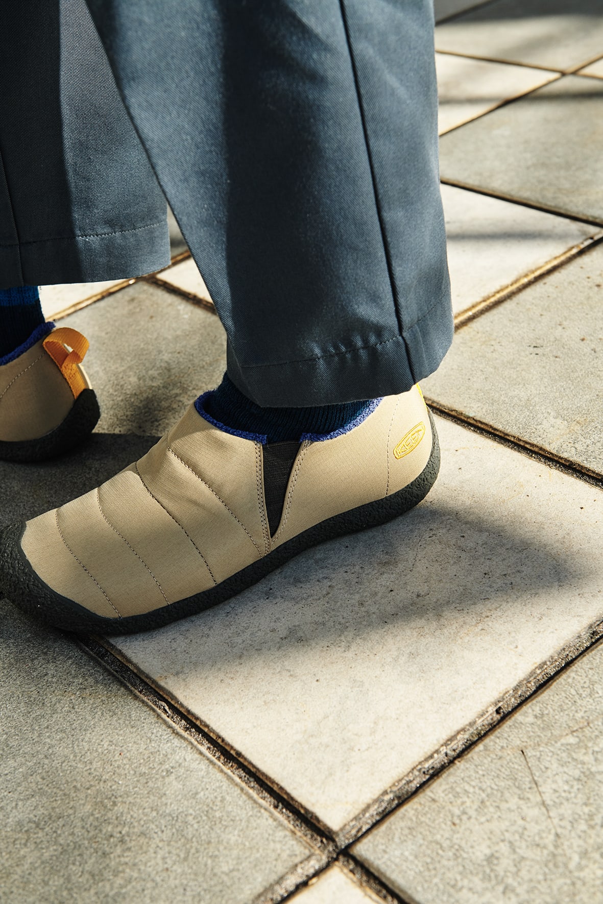 鞋口外型較淺的「HOWSER SLIDE」,採方便穿脫的懶人鞋設計,舒適的羊毛刷毛內容,加上俐落的鞋身線條,不論是作為室內還是室外鞋皆毫無違和。(HOWSER SLIDE/7,000 日圓)。