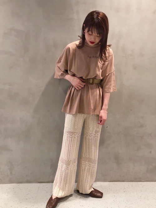 輕鬆的造型氛圍透過舒適的 T-shirt 與針織寬褲被完美的表達出來,全身的秋季色彩使衣著給人一股舒適感受。搭配上方頭鞋,將溫柔與性格兩種風貌搭配的恰到好處。