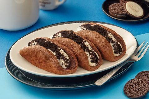 「巧克力布朗尼」一登場就要帶來驚喜,放大版OREO夾心餅乾,造型超吸睛,濃厚巧克力蛋糕口感綿密紮實,軟嫩奶油慕斯內餡包裹著OREO餅乾碎片,超級滿足!