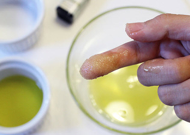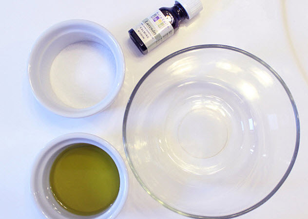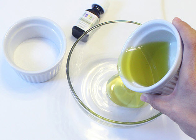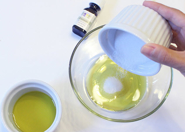 首先你要先準備好橄欖油、海鹽、自己喜歡的精油與一個大碗。